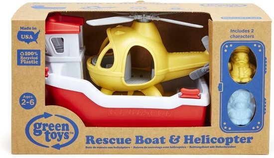 Met de speelgoed reddingsboot met helikopter van Green Toys kunnen kinderen van alle leeftijden hun fantasie volop ontwikkelen. Ze redden badeendjes in nood en beleven net als een echte Seaking spannende avonturen.